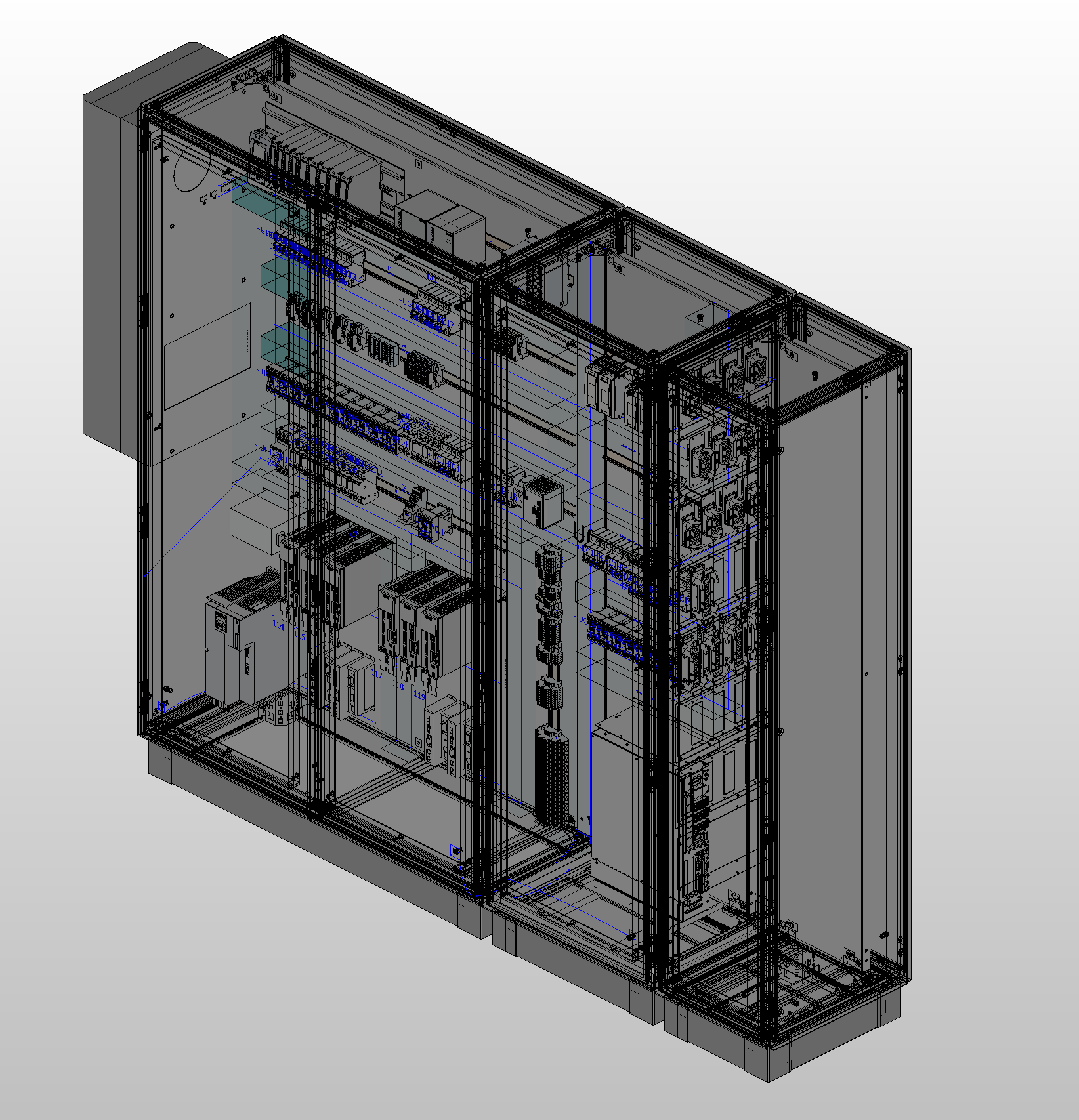 3D-tegningerne generer en stykliste til kabelleverandør, der producerer ledninger med printede numre og i nøjagtige længder - Kabinetter med forborede huller